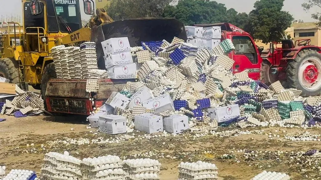 وقال مسؤولون محليون من وزارة التموين المصرية إن بعض المواد الغذائية تباع بأسعار منخفضة في السوق المحلية بشمال سيناء مما أدى إلى مصادرة كميات من البيض الفاسد.
