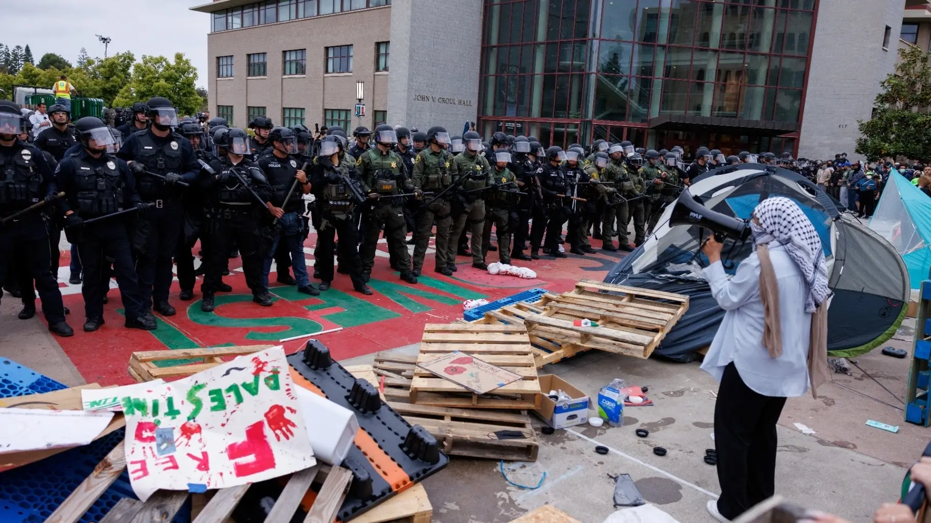 وسيطر طلبة محتجون مناهضون لحرب غزة على مبنى جامعة كاليفورنيا في إيرفاين الأربعاء، وبنوا منطقة محصَّنة في حرم الجامعة.