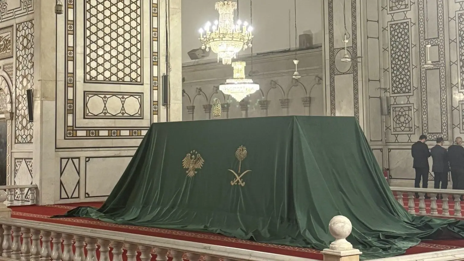 في مشهد أثار ضجة واسعة على منصات التواصل خلال الساعات الماضية، ظهر صندوق ضخم موضوع داخل صحن الجامع الأموي بدمشق، مغطى بقماش أخضر يحمل شعار المملكة العربية السعودية إلى جانب شعار الجمهورية السورية، ومحاط بحراسة أمنية مشددة أثارت فضول السوريين وتساؤلاتهم.