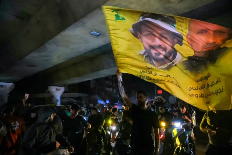 وأظهرت لقطات تلفزيونية لوكالة فرانس برس نازحين وهم في طريق عودتهم إلى الضاحية الجنوبية، معقل "حزب الله"، حيث كان بعضهم يلوح بعلم الحزب المدعوم من إيران أو يرفع صورا لأمينه العام الراحل حسن نصر الله الذي قتلته إسرائيل عام 2024.