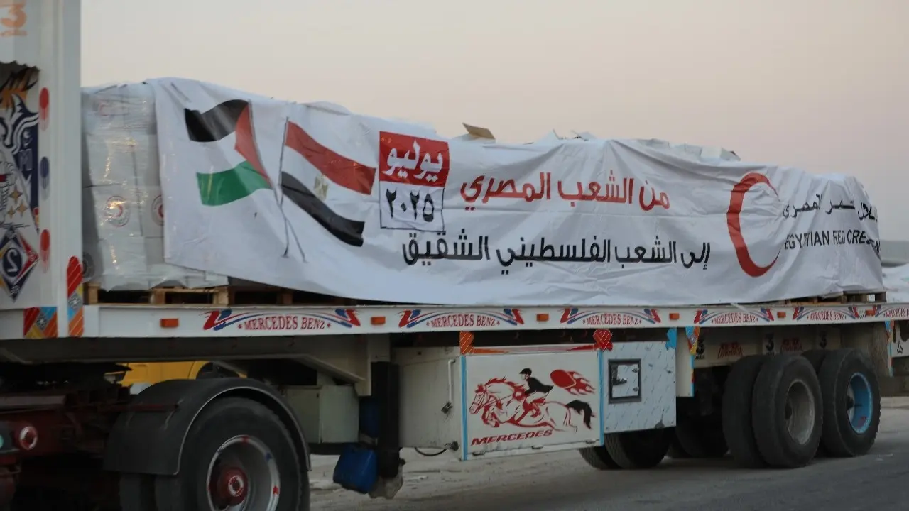 وانطلقت قافلة المساعدات التي أطلقها الهلال الأحمر المصري من معبر رفح في اتجاه جنوب قطاع غزة من خلال معبر كرم أبو سالم.