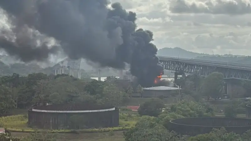 انفجرت ناقلة نفط قرب "جسر الأميركتين" في مدينة بنما، ما أدى إلى اندلاع حريق هائل امتد إلى وحدتي تخزين إضافيتين في منشأة بالبوا لتخزين النفط.
