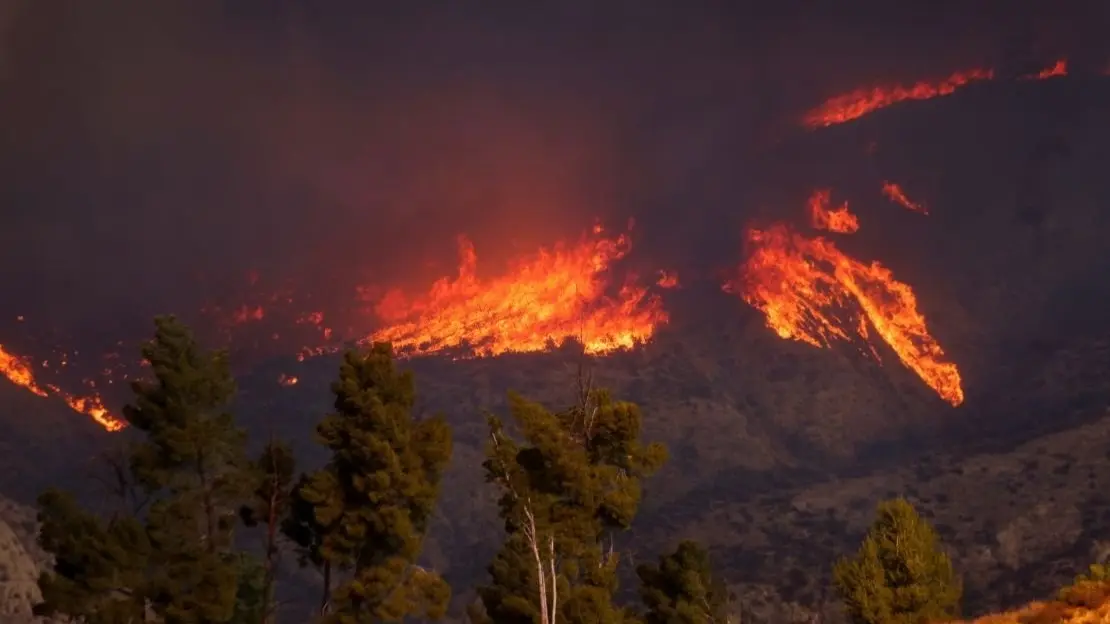 النيران، التي تنتشر بسرعة بالقرب من بحيرة كاستايك، التهمت مئات الأفدنة في أقل من ساعتين، مدفوعة برياح سانتا آنا الحارة والجافة التي ساعدت في تصاعد الحريق بشكل خطير، ما أدى إلى تصاعد أعمدة ضخمة من الدخان غطت المنطقة.